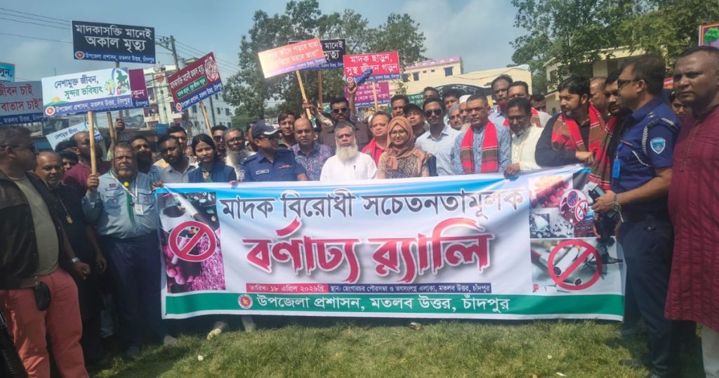 কিছুদিন আগেই অবৈধ মেলায় প্রকাশ্যে সহস্রাধিক গাঁজার দোকান চালানোর অভিযোগের পর চাঁদপুরের মতলব উত্তর উপজেলায় এবার স্থানীয় এমপি ড. জালাল উদ্দিন তরুণ সমাজকে মাদক থেকে রক্ষায় সহস্রাধিক জনতা নিয়ে মাদকবিরোধী র্যালি ও সভা শনিবার সকালে চাঁদপুরের মতলব উত্তর উপজেলার ছেংগারচর সরকারি মডেল উচ্চ বিদ্যালয় মাঠে উপজেলা প্রশাসনের আয়োজনে মাদকবিরোধী সচেতনতামূলক র্যালি ও সভা অনুষ্ঠিত হয়।