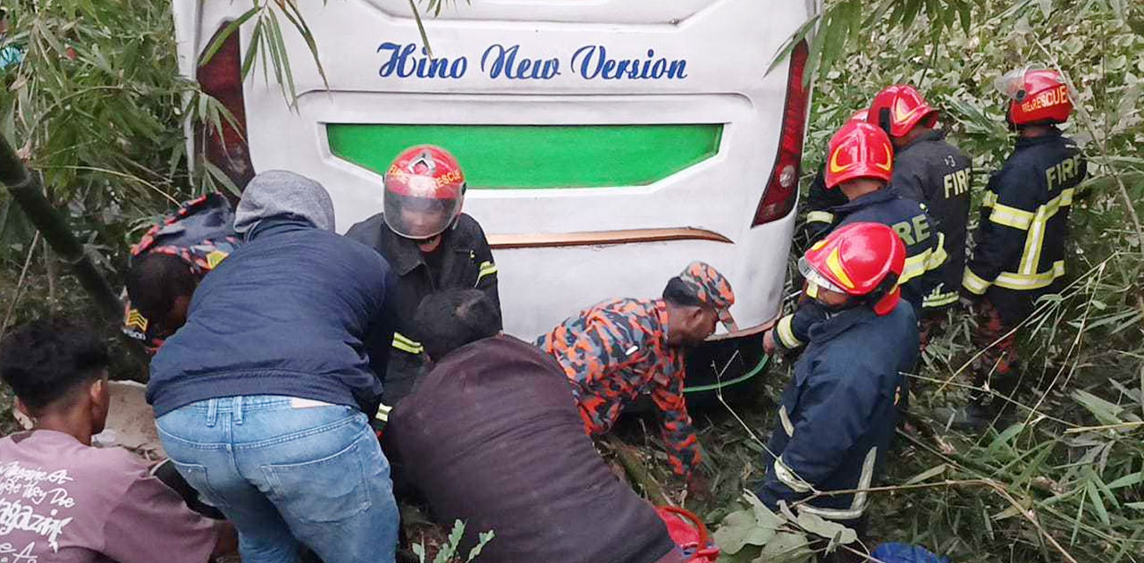 মাদারীপুরের সদরে নিয়ন্ত্রণ হারিয়ে ইজিবাইককে চাপা দিয়ে একটি যাত্রীবাহী বাস খাদে পড়ে ছয়জন নিহত হয়েছেন।